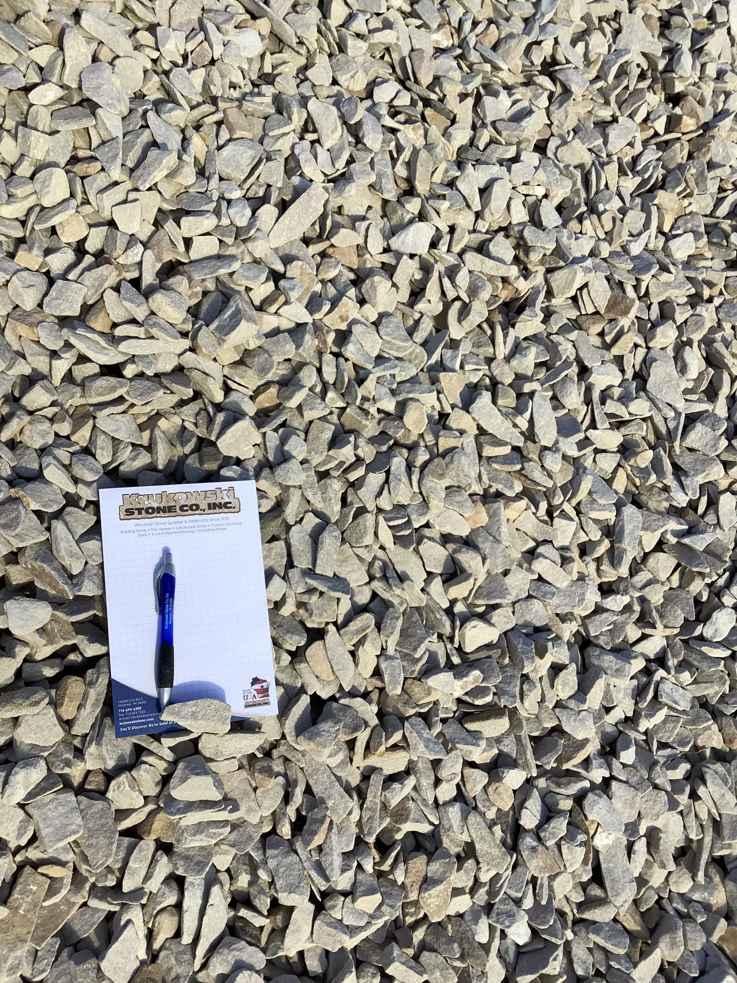 Sandstorm™ is our newest landscaping chip quarried by Krukowski Stone crushed from our Sandy Creek™ material. Our standard size is ¾” to 1 ½.”